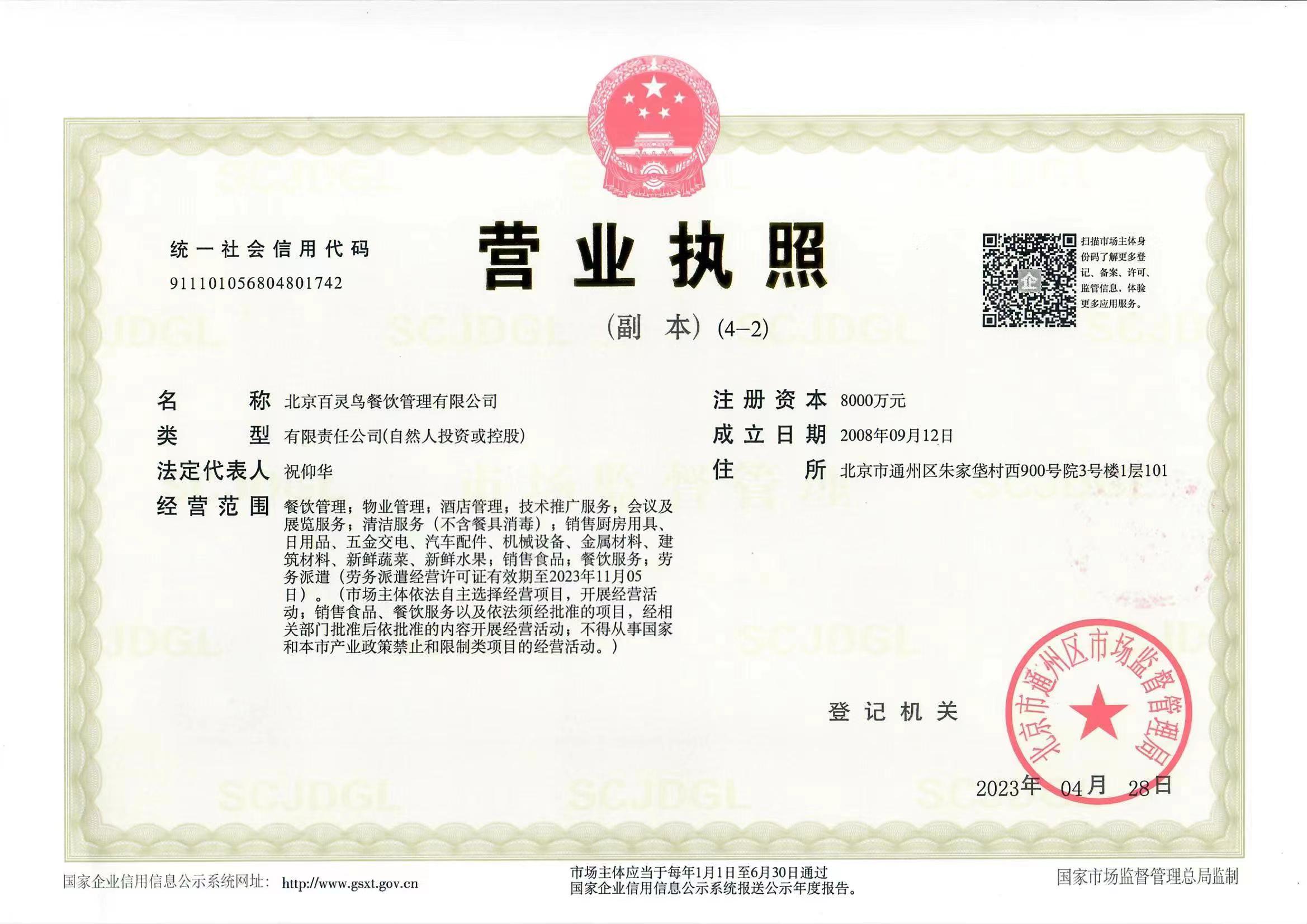 北京百靈鳥(niǎo)餐飲管理有限公司